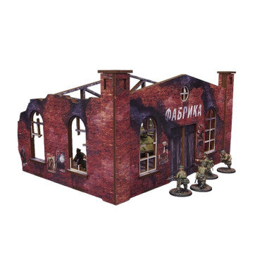 Bring the Battle of Stalingrad to life on the Bolt Action tabletop with this, officially licensed pre-painted HDF scenery from Micro Art Studio. This kit forms the front half of a ruined Stalingrad manufactory building featuring a front gate and roof beam. It features an accessible interior so it can accommodate both your infantry and armoured fighting vehicle models.